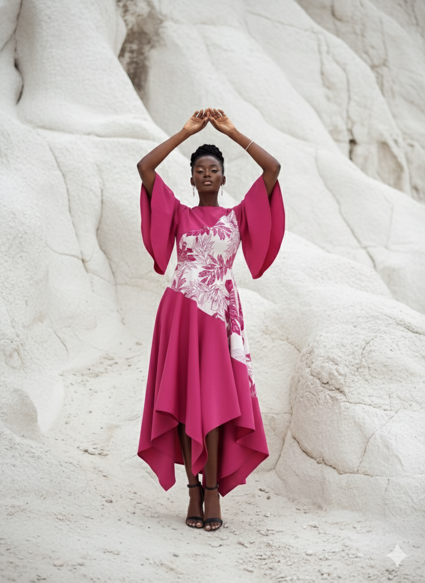 INJABULO- Handkerchief, flared Sleeves Pink Dress